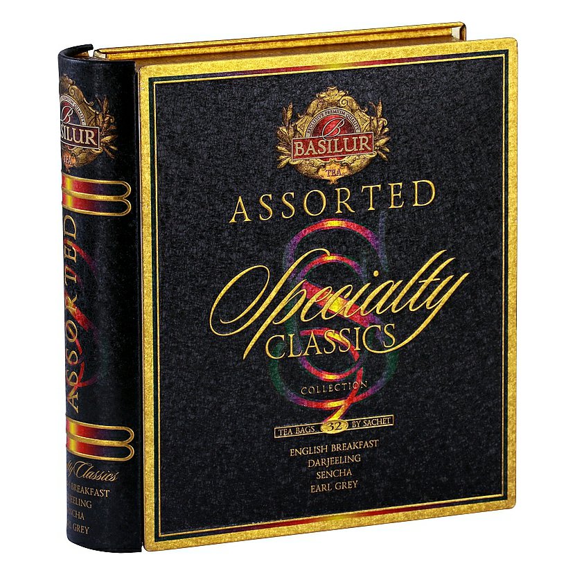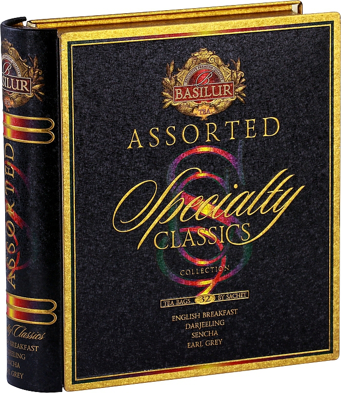 Směs černých a zeleného čaje. Porcované čaje uložené do plechové knihy. Dárek, který půsoví velmi elegantně a luxusně. Cejlonské čaje, které nemají konkurenci