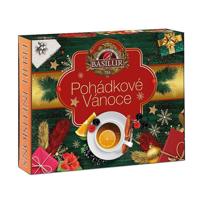 Dopřejte si kouzelné sváteční chvíle s exkluzivní čajovou kazetou Basilur Pohádkové Vánoce, která je plná hřejivých a lahodných ovocných čajových nálevů. Tato bohatá kolekce je ideální pro vytvoření té pravé vánoční atmosféry plné vůní a chutí.