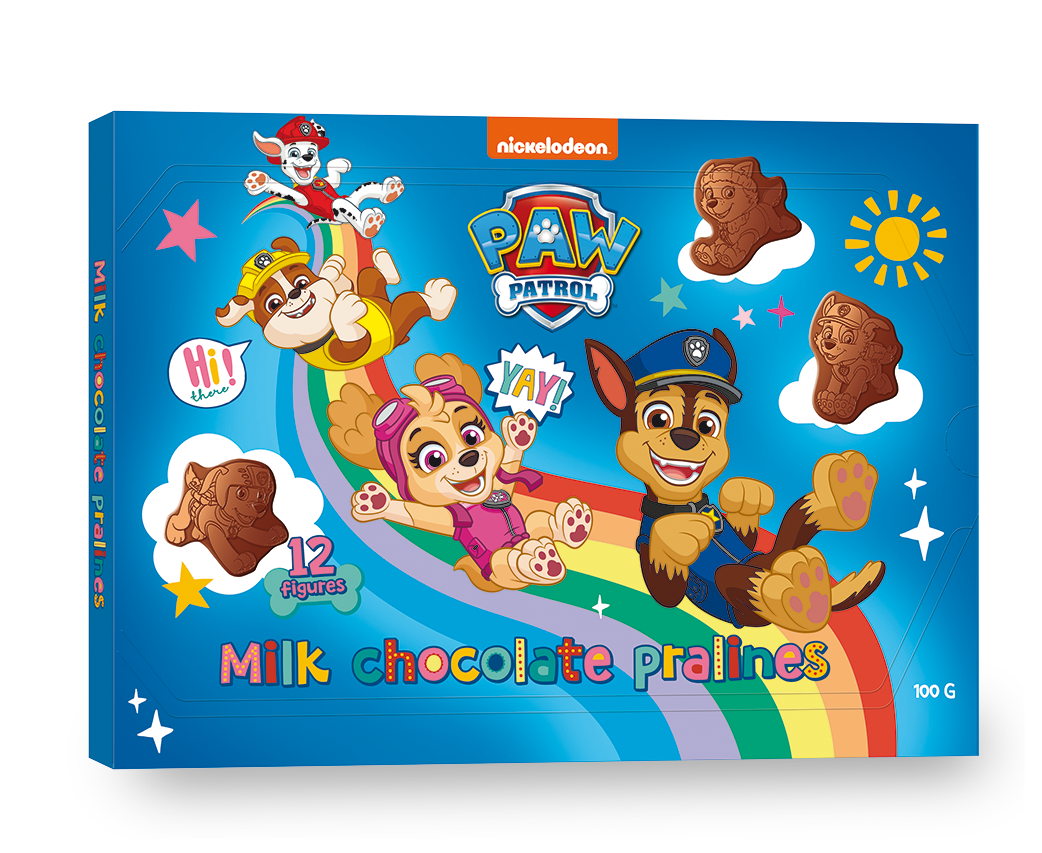 Potřebujete sladký dárek pro příznivce Paw Patrol? Šáhněte po této kolekci tvarovaných čokoládek s motivy figurek Paw Patrol. Kolekce figurek z mléčné čokolády potěší každý mlsný jazýček
