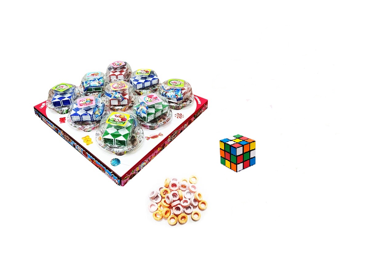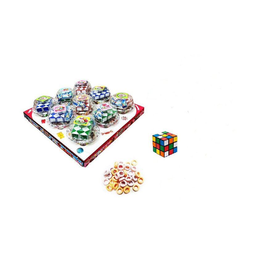 Originální kombinace sladké odměny a zábavné hlavolamové kostky! Každé balení obsahuje 12 kusů plastových skládacích kostek v různých barevných provedeních, uvnitř kterých najdete drobné ovocné bonbony. Ideální jako dárek, odměna nebo atraktivní zboží do dětských koutků.