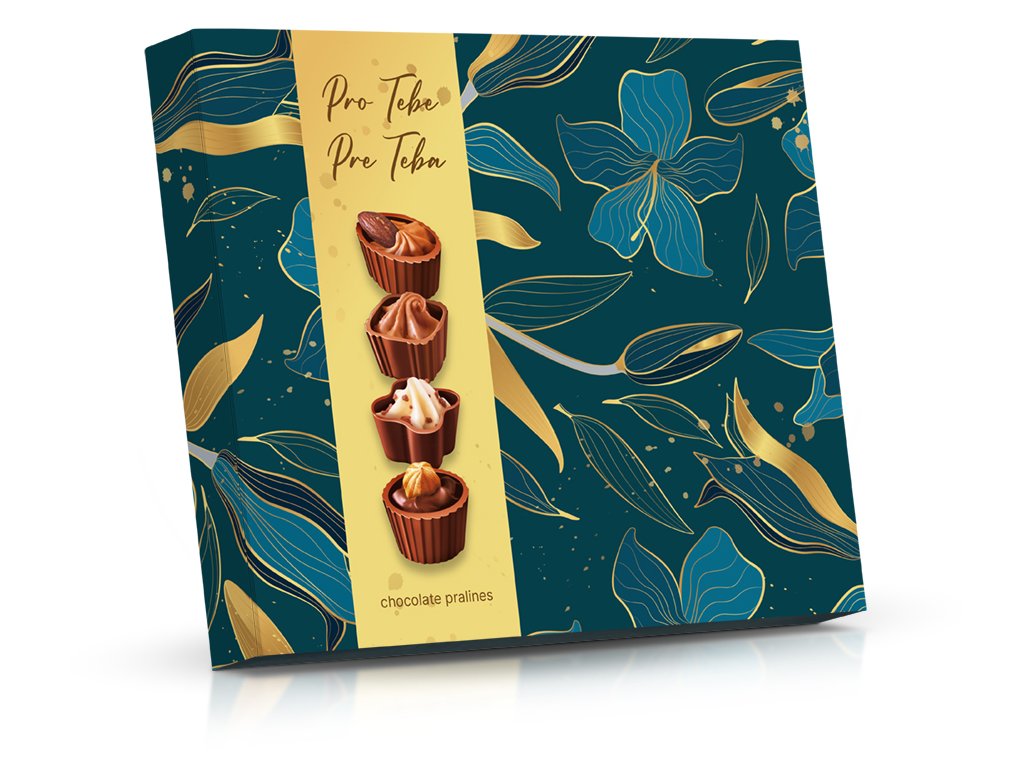 Čokoládové pohárky z hořké čokolády s náplní lískooříškovou, mandlovou a mléčnou. Pohárky mají přání Pro tebe. Budou milou bonboniérou k svátku nebo jen tak pro radost
