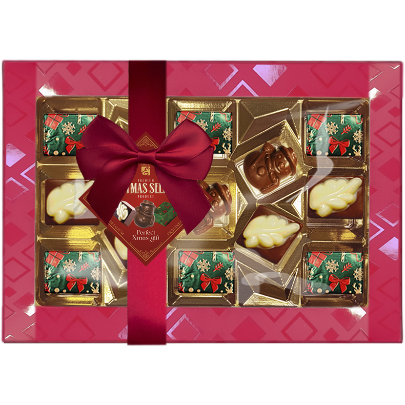 Potěšte své blízké luxusní dárkovou kolekcí belgických pralinek v elegantním svátečním balení. Vánoční edice pralinek kombinuje lahodnou chuť jemné mléčné, hořké i bílé čokolády s výbornými náplněmi, které se rozplývají na jazyku.