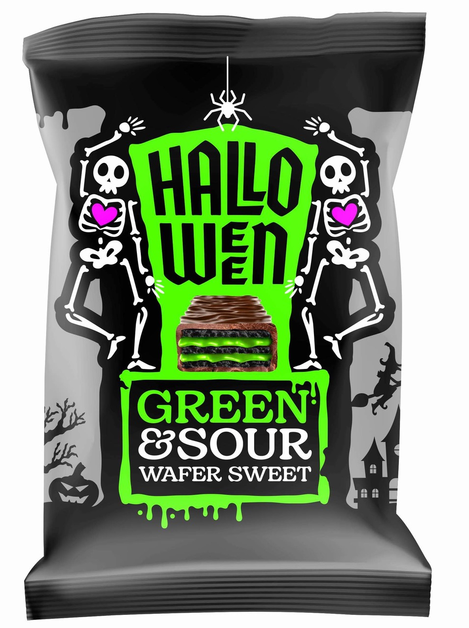 Ponořte se do nezapomenutelného zážitku s našimi wafrovými tyčinkami Halloween Green & Sour. Každé balení vás okouzlí nejen výraznou zelenou barvou, ale také osvěžující kombinací sladkosti a kyselosti, která zaručeně potěší vaše chuťové buňky. Tato wafrová pochoutka je ideální pro všechny, kteří si chtějí užít trochu strašidelné zábavy a přidat do svých oslav Halloween trochu neobvyklé chuti. Vychutnejte si tento originální Halloween snack s přáteli nebo jako sladkou pochoutku na vaši halloweenskou párty!
