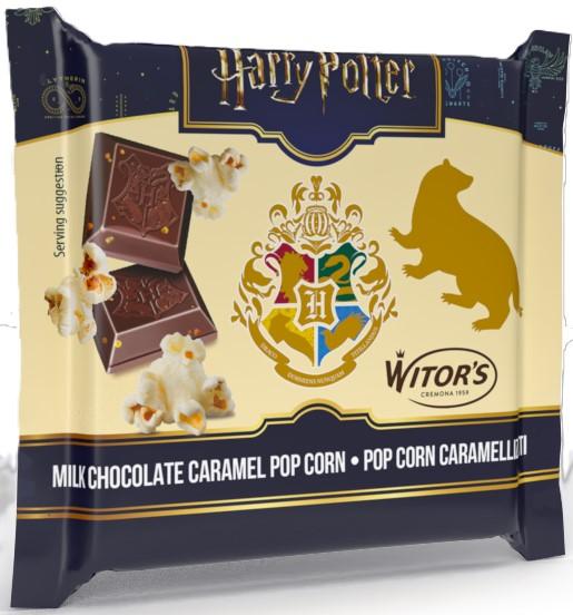 Vstupte do kouzelného světa Harryho Pottera s touto jedinečnou čokoládovou pochoutkou! Mléčná čokoláda prémiové kvality od italské značky Witor's je obohacena o křupavé kousky karamelizovaného popcornu, které jí dodávají nezaměnitelnou texturu a chuť. Obal je zdobený znakem Bradavic a symboly jednotlivých kolejí, což z něj činí perfektní dárek pro každého fanouška této kouzelnické ságy.