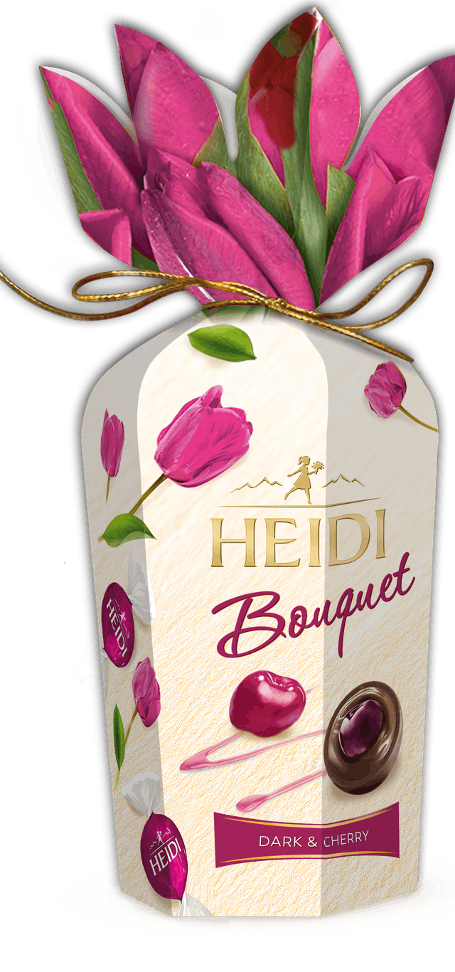 Heidi Bouquet Dark Cherry je mistrovským dílem mezi pralinkami, které spojuje hlubokou chuť kvalitní hořké čokolády s jedinečně sladkokyselou chutí kandované višně. Tyto lahodné pralinky jsou vyrobeny z pečlivě vybraných surovin, které zaručují nejen nezapomenutelný chuťový zážitek, ale i špičkovou kvalitu.