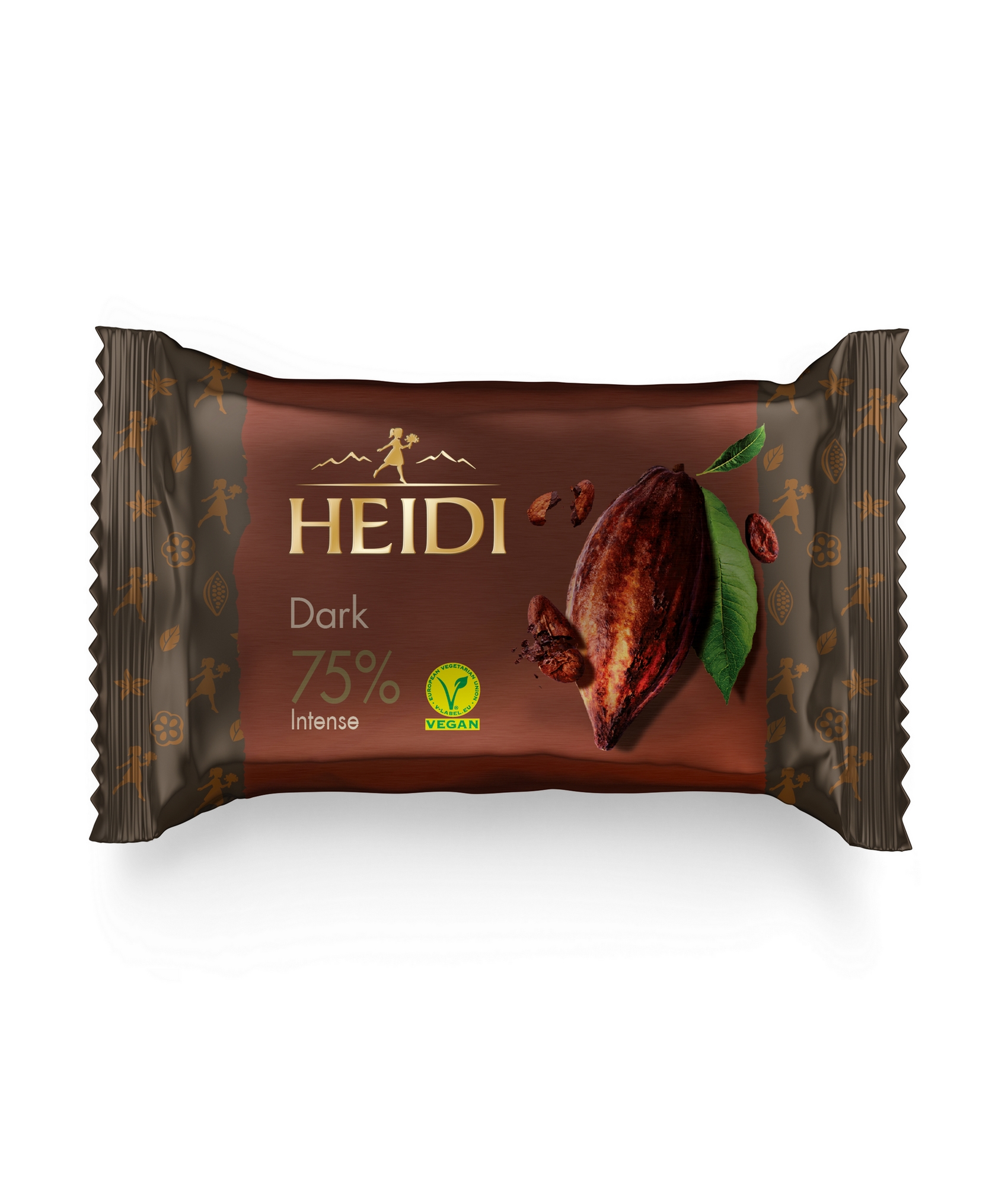 Složení: kakaová hmota, cukr, kakaové máslo, kakaový prášek, emulgátor, lecitin (obsahuje sóju), přírodní aroma vanilky. Obsah kakaové sušiny v čokoládě nejméně 75%. Může obsahovat stopy skořápkových plodů, lepků a mléka.
