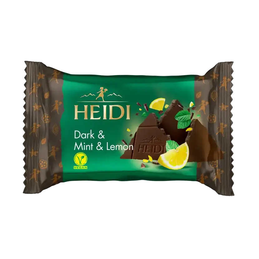 Hořká čokoláda nikdy nebyla tak svěží! Heidi Máta a Citron je tenká tabulka prémiové hořké čokolády, která překvapí neotřelým spojením osvěžující máty a jemně kyselého citrónu. Tato kombinace přináší dokonale vyvážený chuťový zážitek – intenzita hořké čokolády je odlehčena lehkostí a svěžestí, která zůstává na jazyku. Čokoláda je zabalena v elegantním obalu, který z ní dělá skvělý dárek pro milovníky originálních chutí.