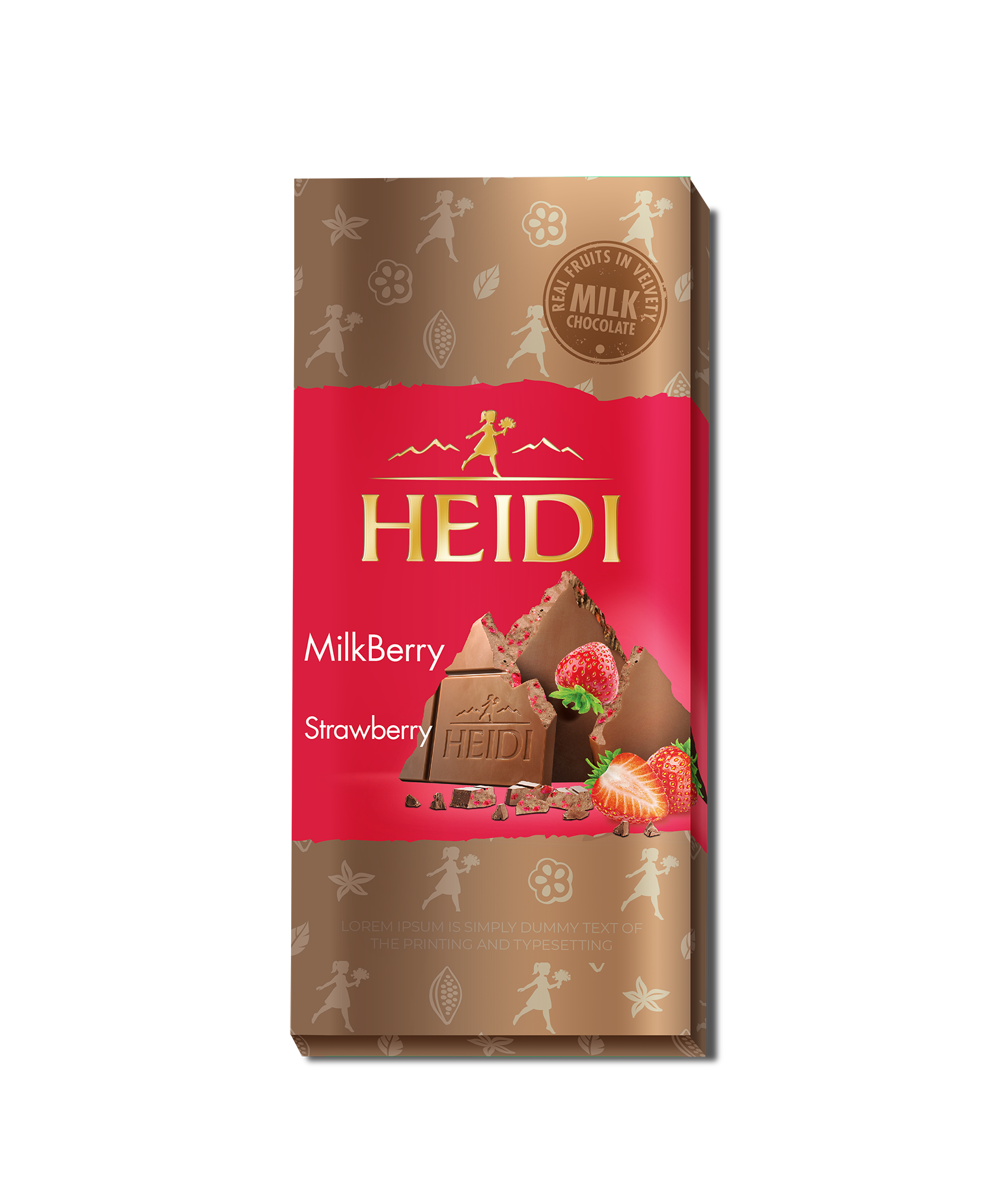 Heidi MilkBerry je lahodná mléčná čokoláda obohacená o kousky šťavnatých jahod, která přináší dokonale sladký a ovocný zážitek. Krémová textura mléčné čokolády se snoubí se svěžími tóny jahod, což vytváří harmonickou kombinaci chutí, která potěší vaše smysly. Pečlivě vybrané ingredience zaručují vysokou kvalitu a jedinečný chuťový profil. Heidi MilkBerry je ideální volbou pro milovníky jemných čokolád s ovocným nádechem a nabízí chvíle sladkého potěšení kdykoli během dne. S váhou 80 g je tato čokoláda perfektní jako sladká odměna, dárek nebo jako sdílená radost s blízkými. Objevte kouzlo spojení mléčné čokolády a jahod s Heidi MilkBerry!