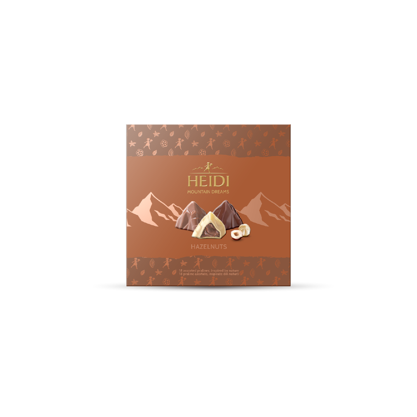 Složení: cukr, rostlinné tuky (palmový, shea), kakaové máslo, sušené plnotučné mléko, kakaová hmota, karamelizované lískové ořechy 5% (lískové ořechy 4%, cukr, emulgátor lecitin (obsahuje sóju), sušené odstředěné mléko, mléčný tuk, sušená syrovátka ( mléko), kakaový prášek, emulgátor, lecitin (obsahuje sóju). Obsah kakaových složek v mléčné čokoládě minimálně 27%. Obsah kakaové sušiny v hořké čokoládě 48%, obsah kakaové sušiny v bílé čokoládě 27%. Obsah mléčných složek v mléčné čokoládě minimálně 14%. Může obsahovat stopy dalších skořápkových plodů a lepek.