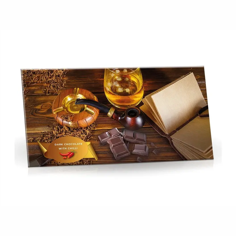 kakaová hmota (z Afriky, Severní a Jižní Ameriky), cukr, chili prášek 0,3%, kakaové máslo, kakaový prášek se sníženým obsahem tuku, emulgátory: sójový lecitin, E476, přírodní aroma. Vysoký obsah železa a hořčíku.