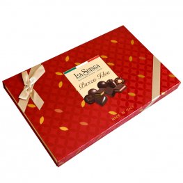Dopřejte si výjimečný zážitek s luxusní bonboniérou La Suissa Pazza Idea. Tato elegantní červená krabice s jemnou zlatou stuhou v sobě ukrývá pečlivě vybrané italské pralinky, které potěší každého milovníka čokolády. Každý kousek je vyroben z kvalitní italské čokolády a plněn lahodnými náplněmi – od jemného nugátu až po krémové likérové příchutě.