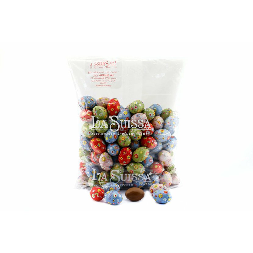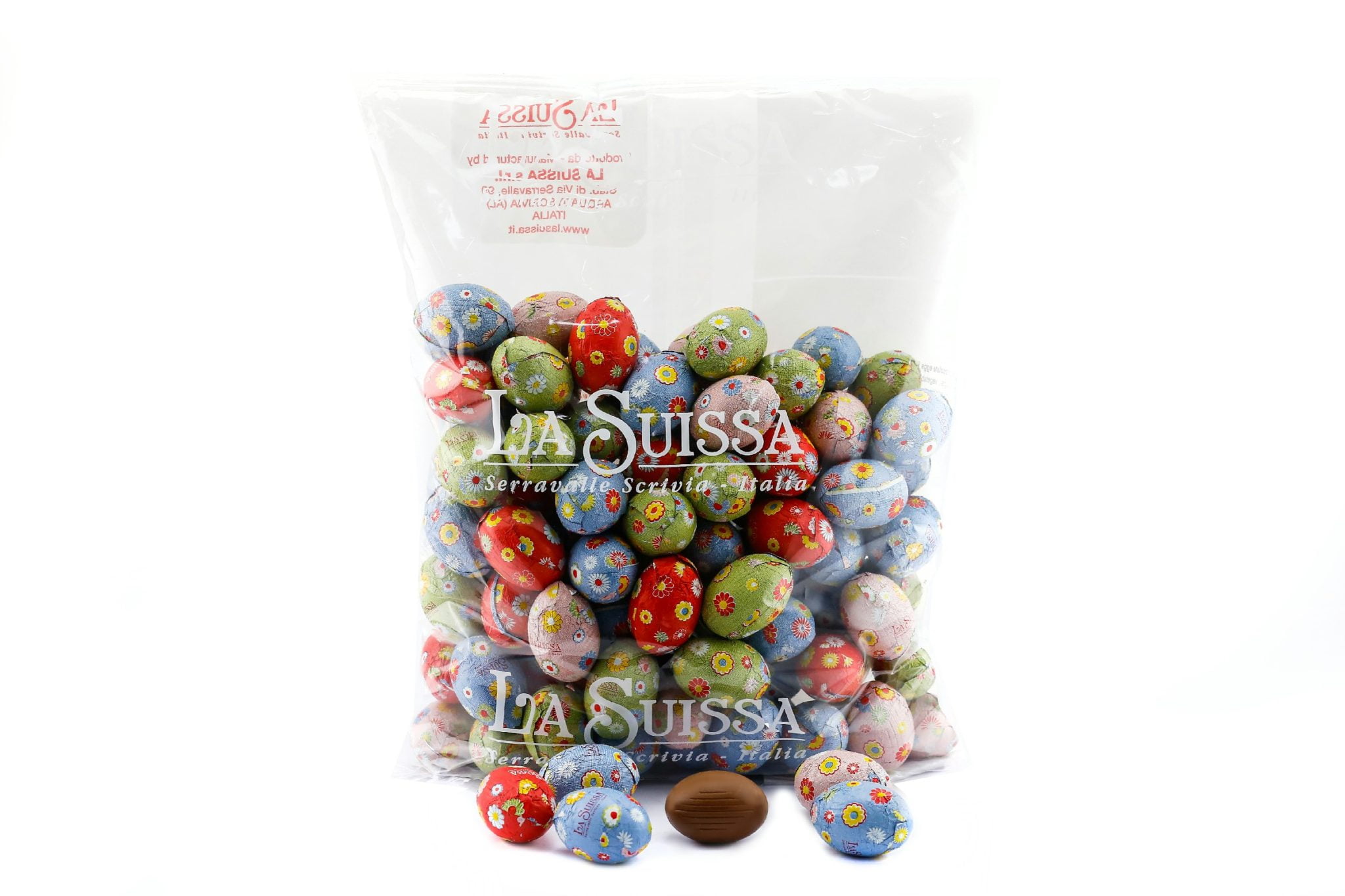 Větší barevná velikonočních vajíčka s motivem kytiček. Čokoládová vajíčka jsou naplněné lahodným kakaovým krémem a křupinkami. Balení obsahuje cca 90 kusů vajíček. Vajíčko má 11g