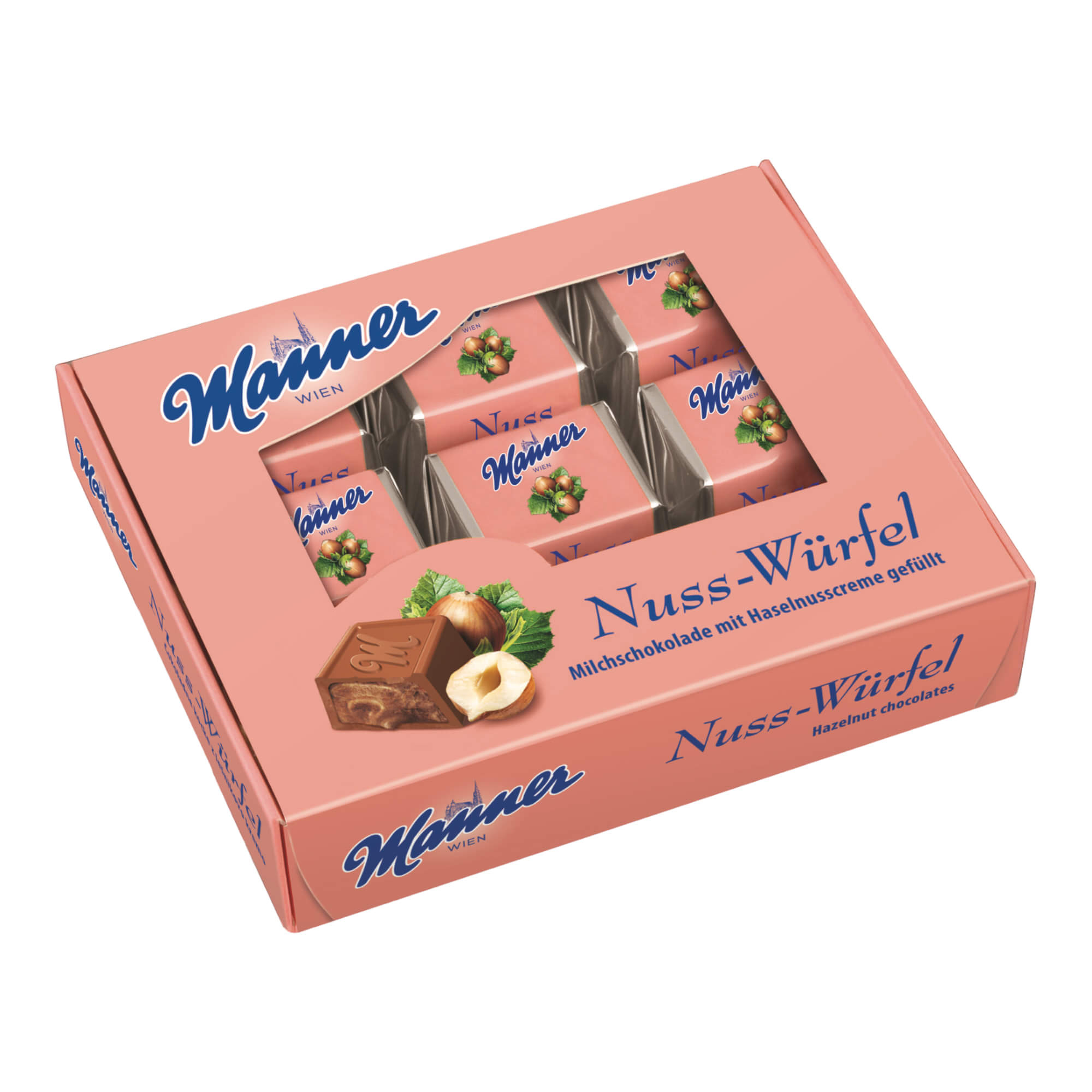 Oblíbená specialita od značky Manner – NussWürfel 115 g – je lahodnou kombinací jemné mléčné čokolády a krému z lískových oříšků. Tyto křupavé a zároveň jemné kostky jsou vyrobeny podle tradiční receptury s důrazem na kvalitu surovin. Mléčná čokoláda, kterou Manner vyrábí z pečlivě vybraných kakaových bobů, se harmonicky doplňuje s jemně našlehaným lískovo-oříškovým krémem a vytváří nezapomenutelný chuťový zážitek. Praktické 115g balení je ideální ke sdílení s přáteli, rodinou nebo jako sladká odměna během dne. Vhodné také jako drobný dárek pro milovníky kvalitních čokoládových specialit.