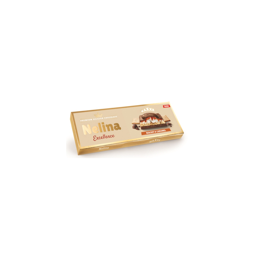 Dopřejte si výjimečný čokoládový zážitek s luxusní tabulkou Nelina Quixxx. Tato prémiová mléčná čokoláda ukrývá bohatou mléčnou náplň s příchutí lískových oříšků, doplněnou o lahodný karamel a křupavé kousky sušenek. Spojení jemnosti, sladkosti a textury v každém soustu potěší všechny milovníky kvalitních čokolád. Obal v elegantní zlaté barvě působí slavnostně a luxusně – ideální jako vkusný dárek, který potěší oko i chuťové buňky.