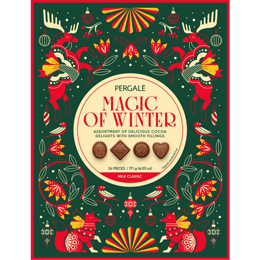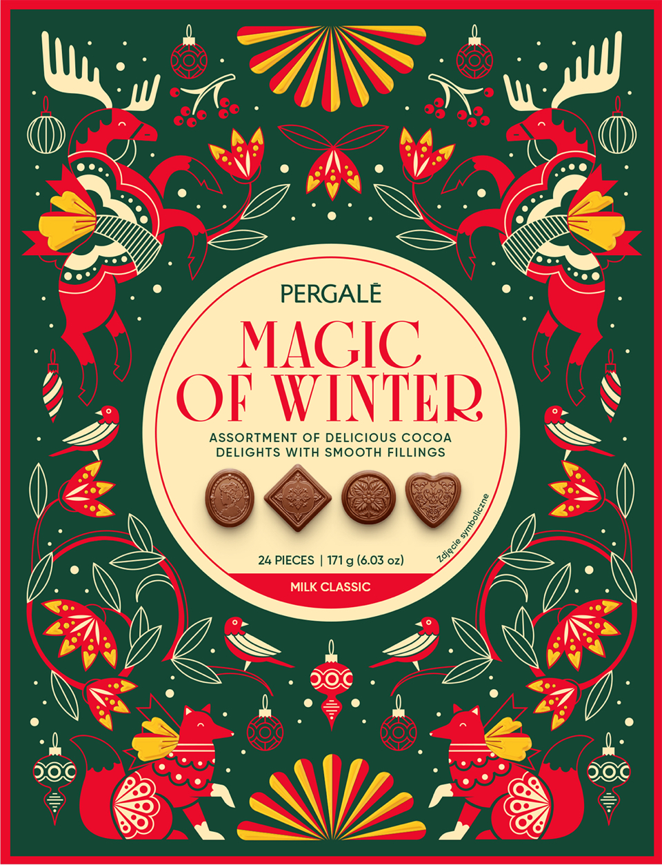 Vánoční bonboniéra obsahuje 24 kusů netradičních pralinek s náplní. Zlatý design působí velmi elegantně. Bonboniéru s vánočním zlatým dekorem můžete darovat samostatně nebo do dárkového balíčku