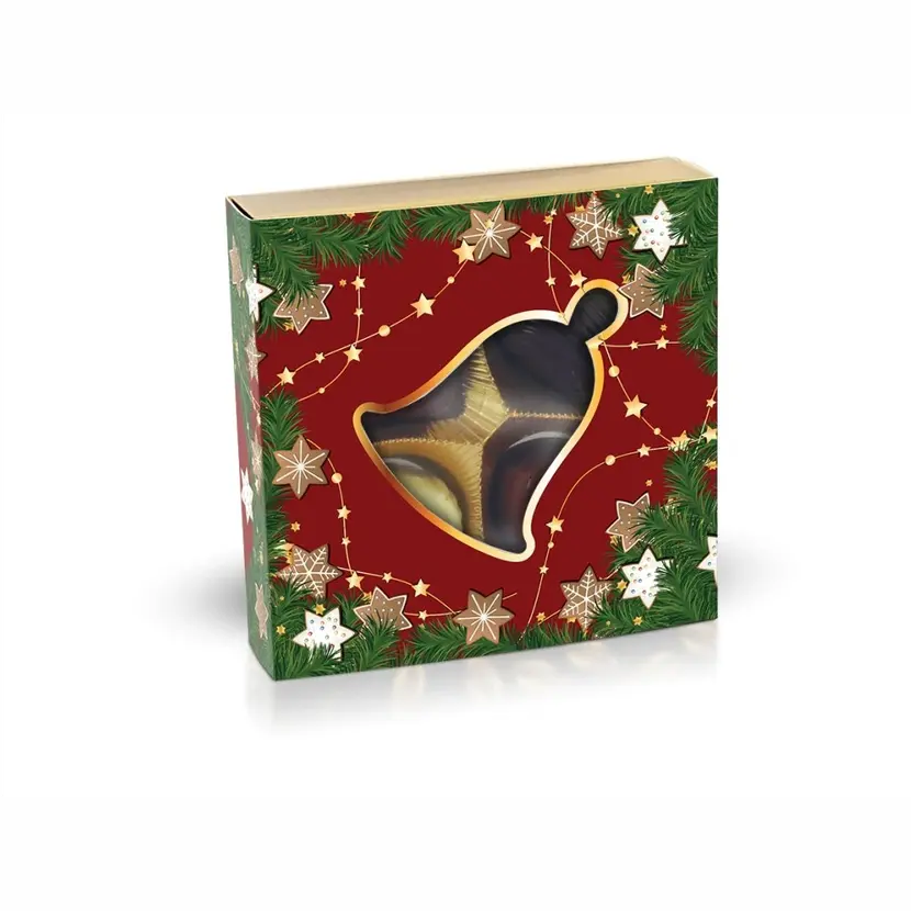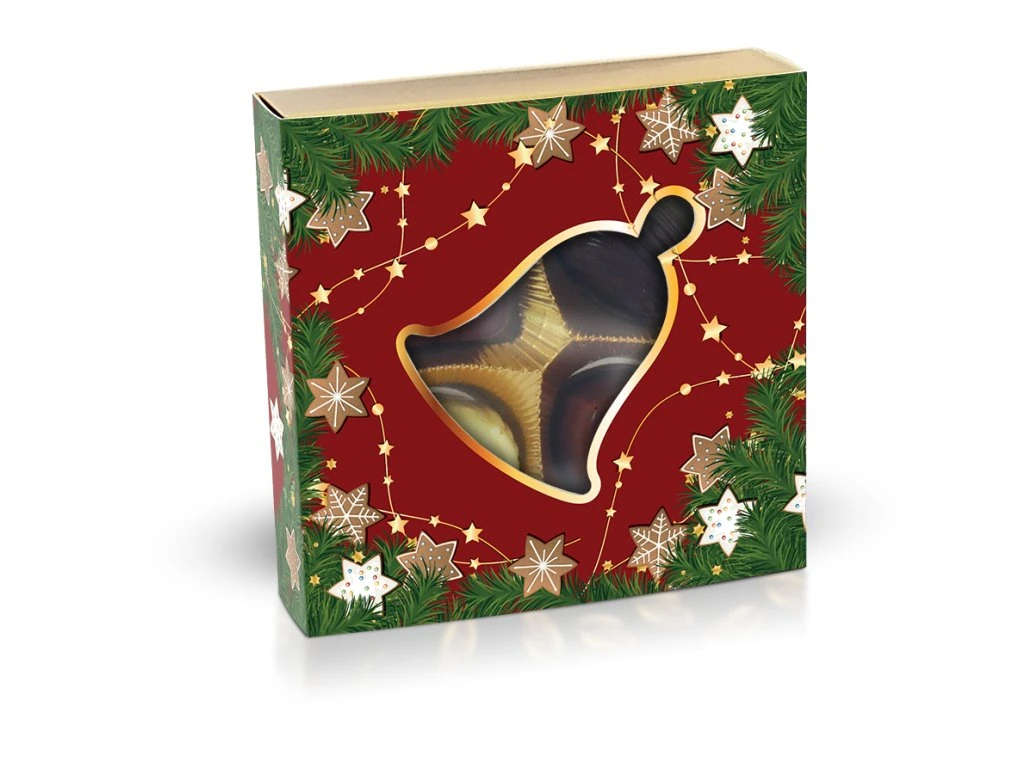 Vánoční belgické pralinky 50g, bonboniéra s výřezem zvonečku