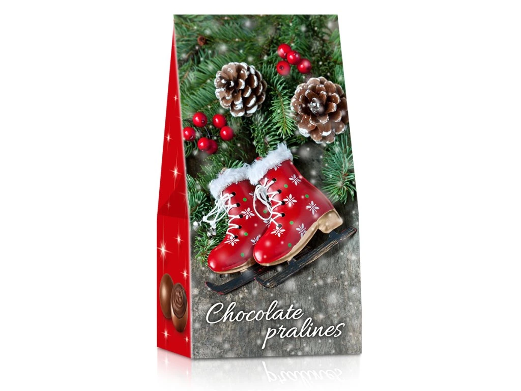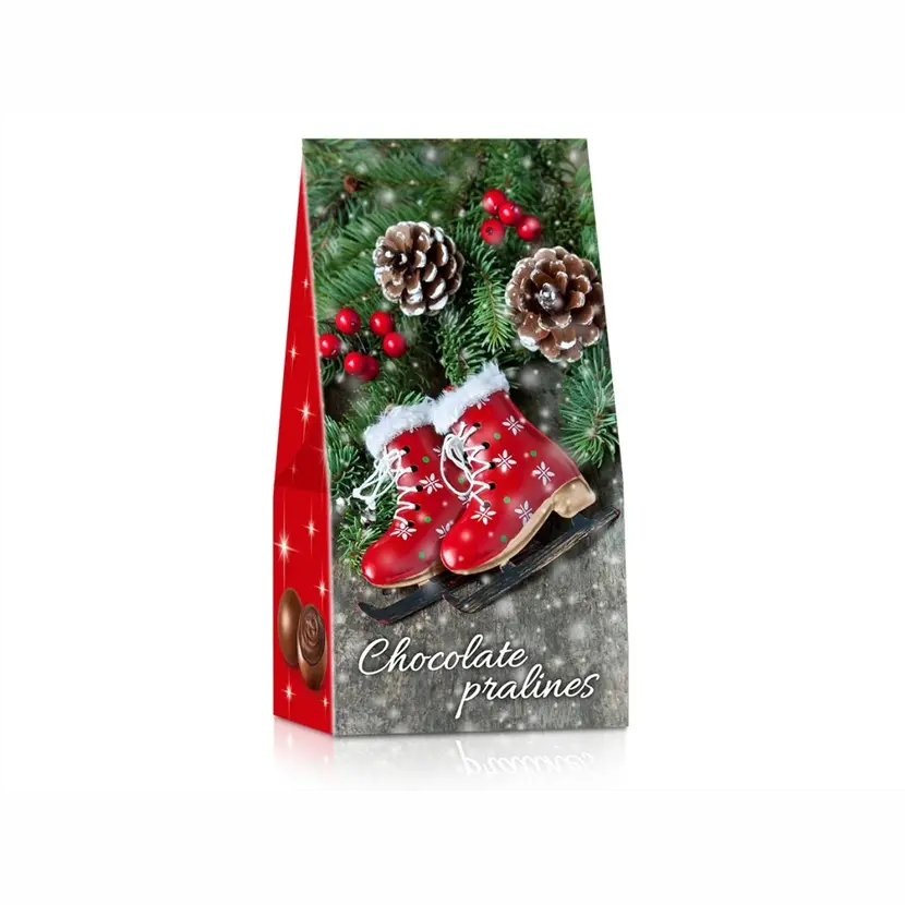 Vánoční pralinky 100 g – italské pralinky s náplní v dárkovém balení stříšky s motivem červených bruslí