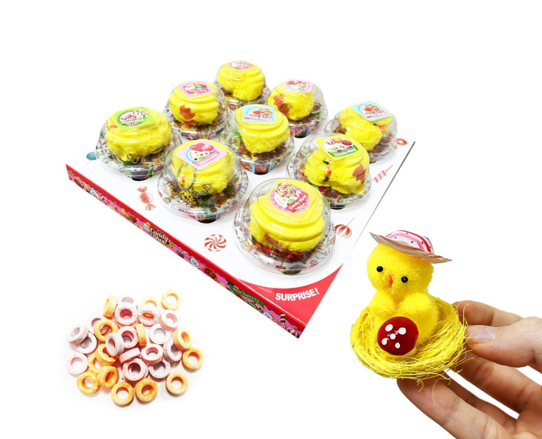 Roztomilé velikonoční kuřátko v hnízdečku je ideálním drobným dárkem pro koledníky i milou velikonoční dekorací. Uvnitř balení se ukrývá sladké překvapení v podobě barevných cukrovinek, které potěší každé dítě. Kuřátko je vyrobeno z jemného plyšového materiálu a ozdobnými dekoracemi a vajíčkem, takže krásně doplní velikonoční atmosféru.